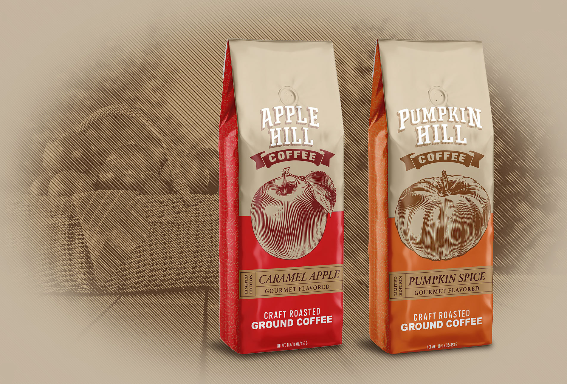 A few of the coffee bags we designed for Life + Style Gourmet. These small batch roasted gourmet coffees come in a variety of flavorful combinations. They gave us a chance to get creative with foil and color.