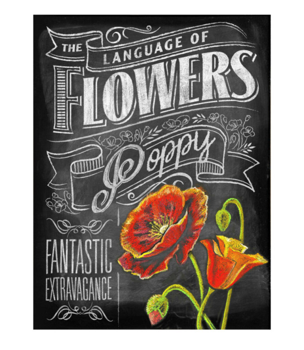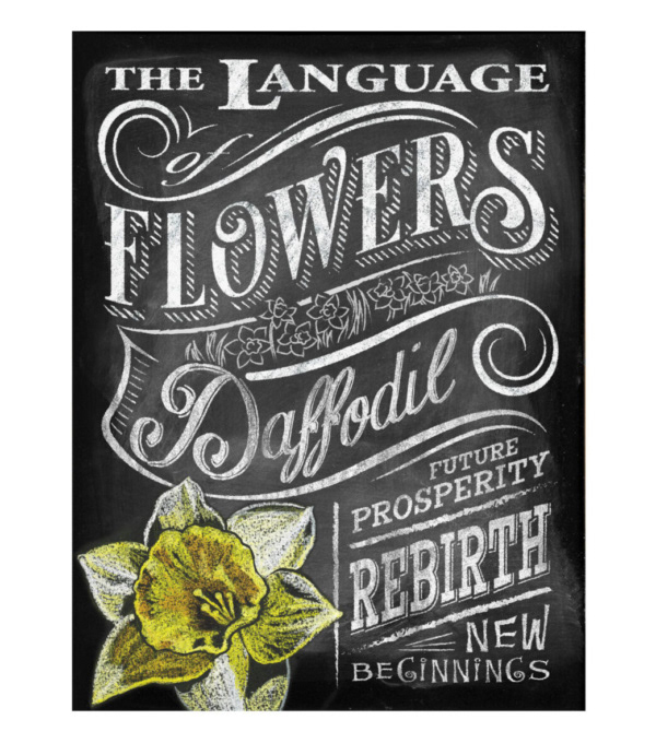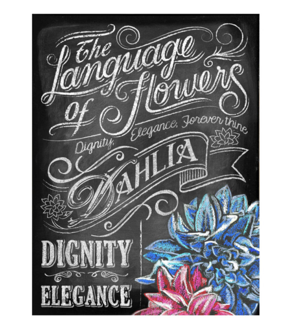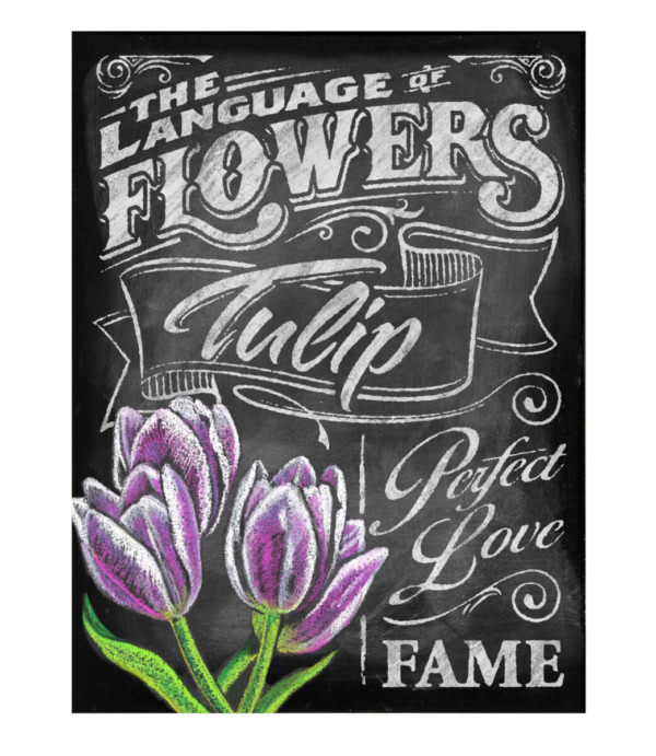 Chalkboard art that describes the secret language of flowers. These images will be made available by Artwall.